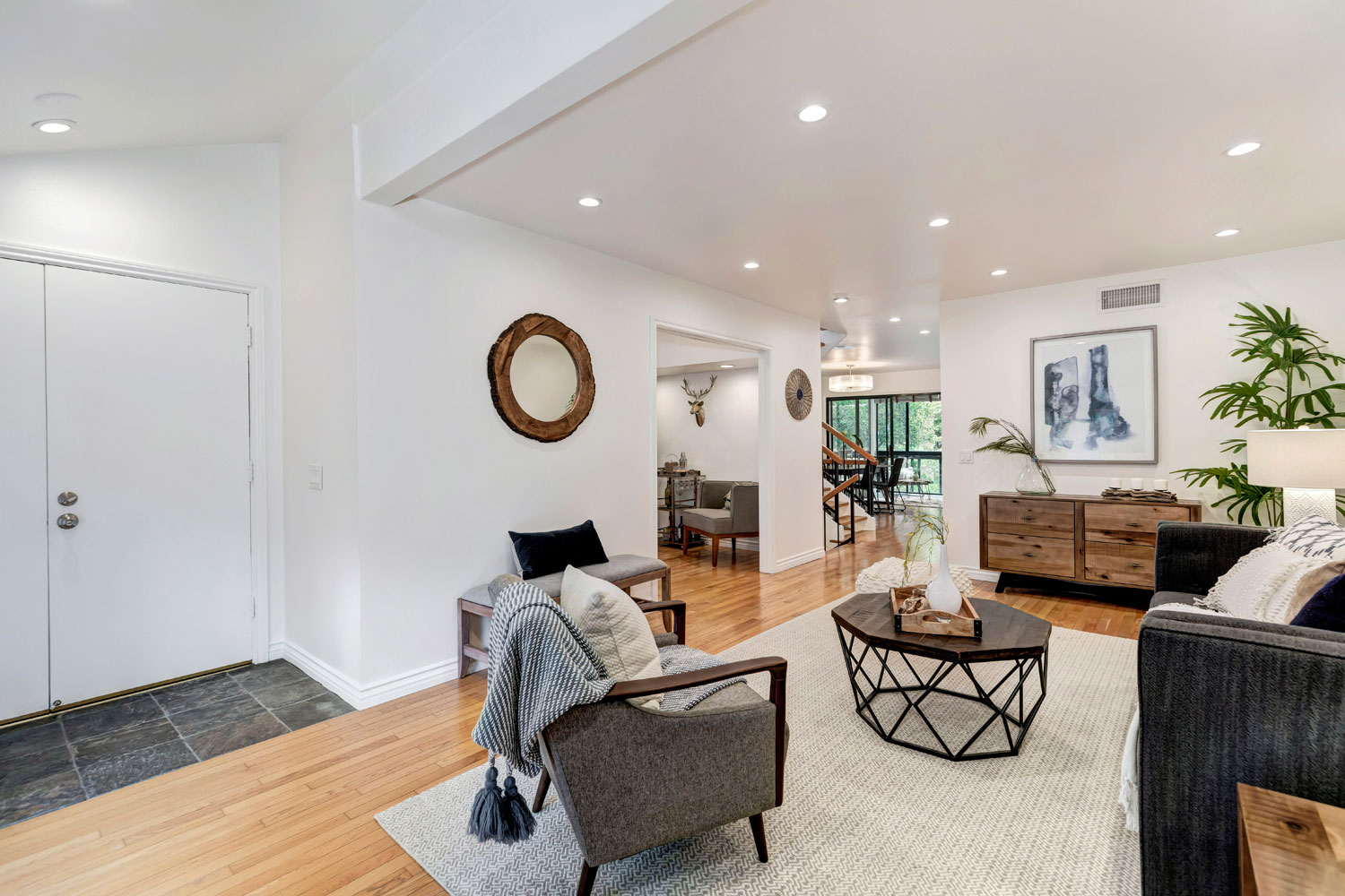 Stunning remodeled 3 beds +3 baths + Den townhome. Located in the highly desirable guard gated Raintree community, in the heart of thriving Culver City. A townhouse that feels like a single family home with direct entry 2-car attached garage, set in a peaceful, tranquil oasis. Enjoy resort-like living with lush landscaped grounds, large lake, pool, tennis courts, & clubhouse. Entry with vaulted ceilings, inviting formal living room, gleaming hardwood floors, fireplace, large window and recessed lighting. Off the living room is a spacious den that could be used as the 4th bedroom. Spacious and bright dining room with sliding doors leads out to a large enclosed patio. Updated kitchen with newly painted cabinets, recessed lighting, and stainless steel appliances. Spacious master suite with dramatic cathedral ceilings, luxurious oak hardwood floors, and a huge walk-in closet. Don't miss this incredible property!